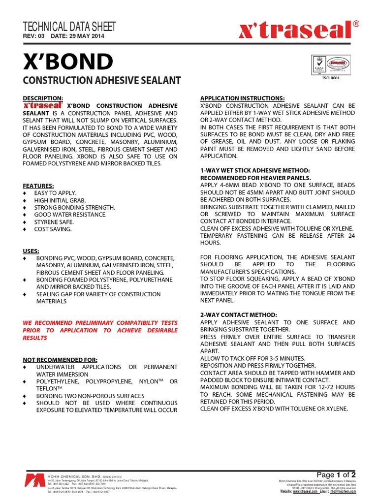 5990785459tds Xbond Construction Adhesive Sealant Pdf Adhesive Drywall