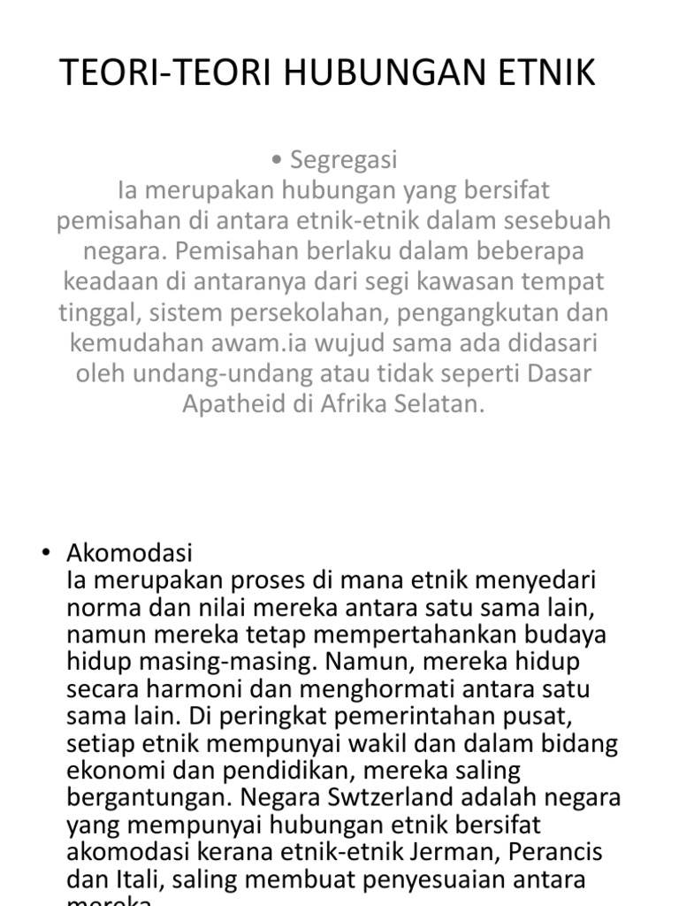 Teori Teori Hubungan Etnik