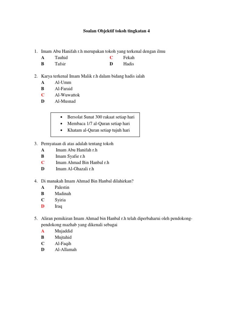 Soalan Objektif Tokoh Tingkatan 4