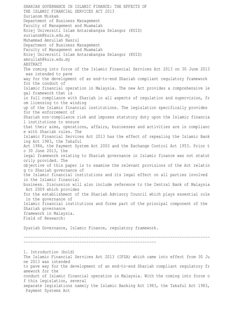 Pdf Shariah Governance In Islamic Finance The Effects Of The Islamic Financial Services Act 2013