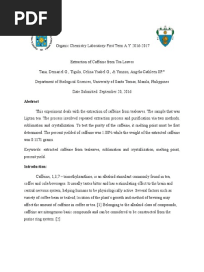 Project Report Extraction And Determination Of Tea Samples Contains In Caffeine Mba Projects