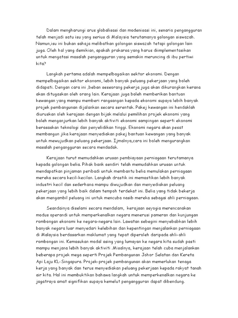 Masalah Pengangguran Di Malaysia
