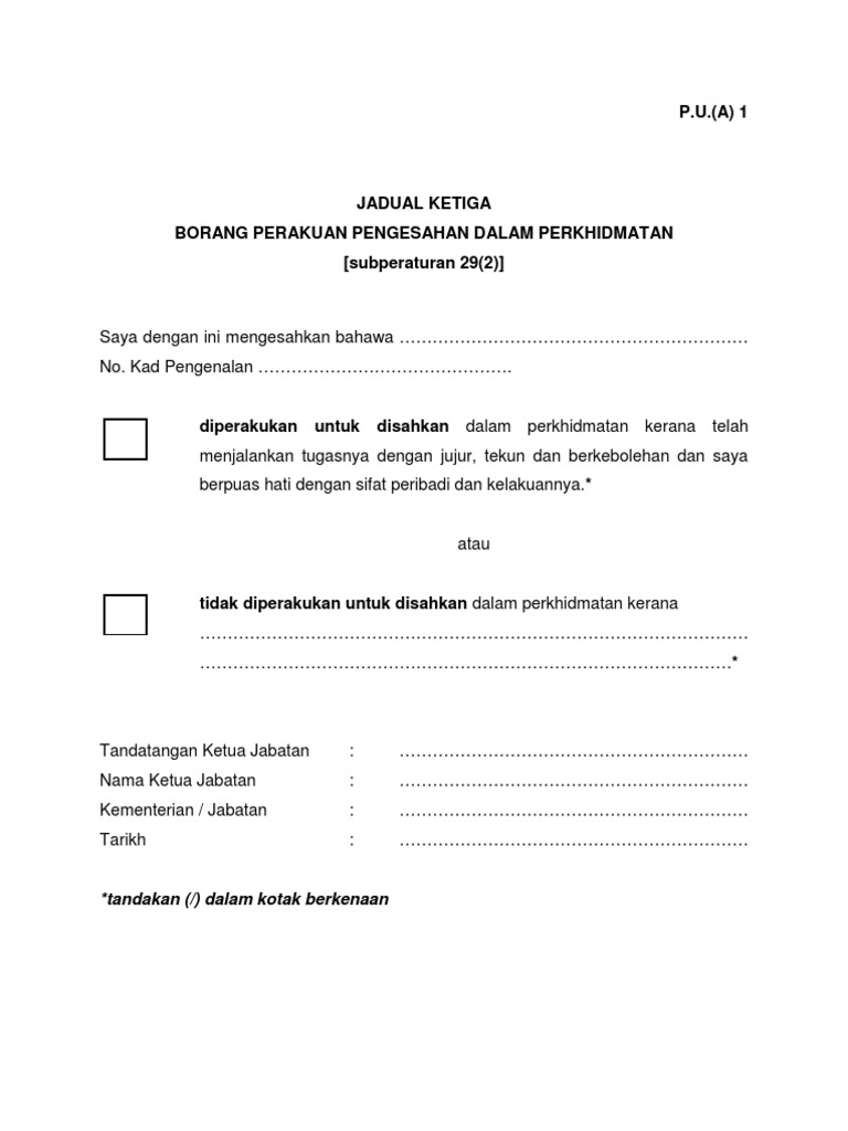 Borang Perakuan Dan Pengesahan Dalam Perkhidmatan