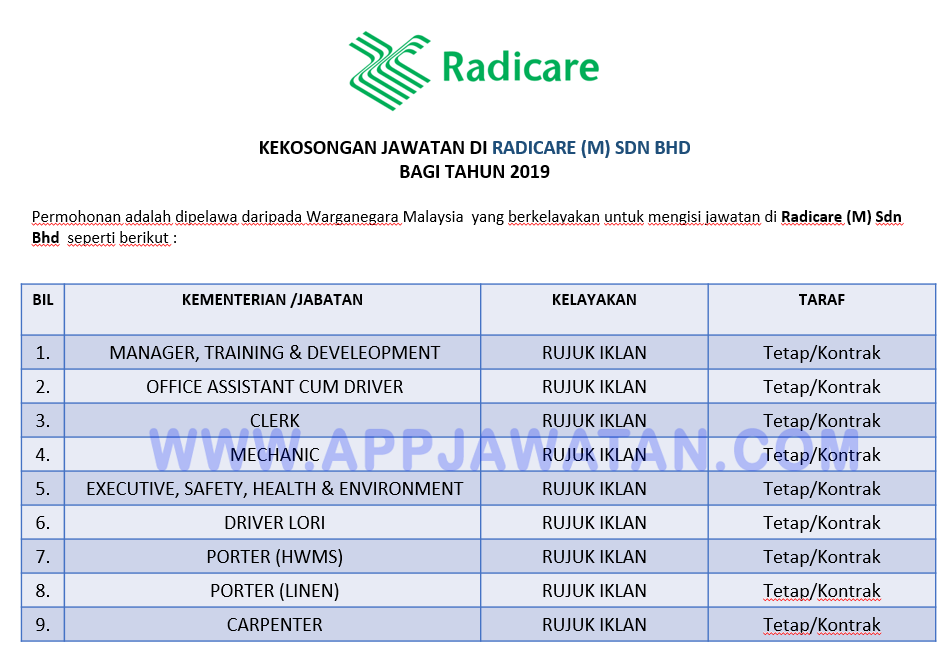 Jawatan Kosong Terkini Di Radicare M Sdn Bhd Appjawatan Malaysia