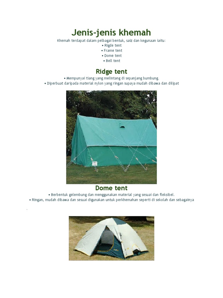 Jenis Jenis Khemah Kor Kadet Polis