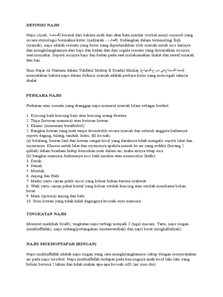 Jenis Jenis Najis Dalam Tulisan Jawi
