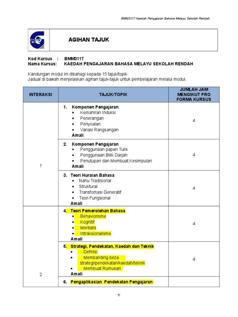 Agihan Tajuk Bmm3117 Kaedah Pengajaran Bahasa Melayu Sekolah Rendah