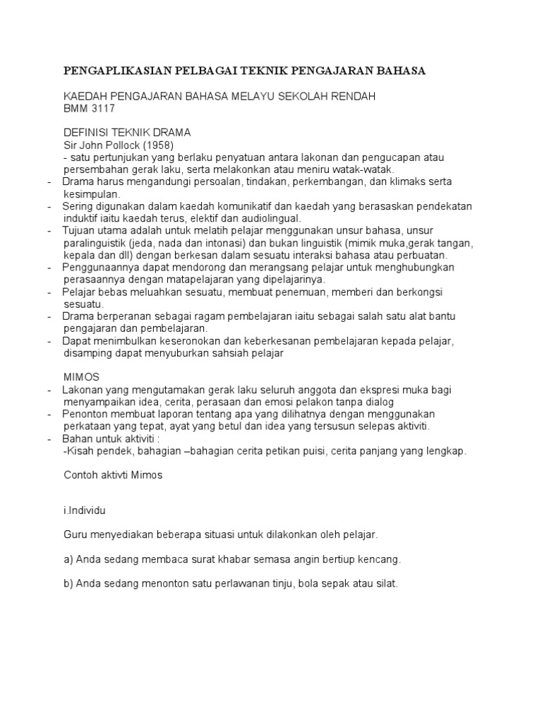 Bmmb3063 Kaedah Pengajaran Bahasa Melayu Sekolah Rendah