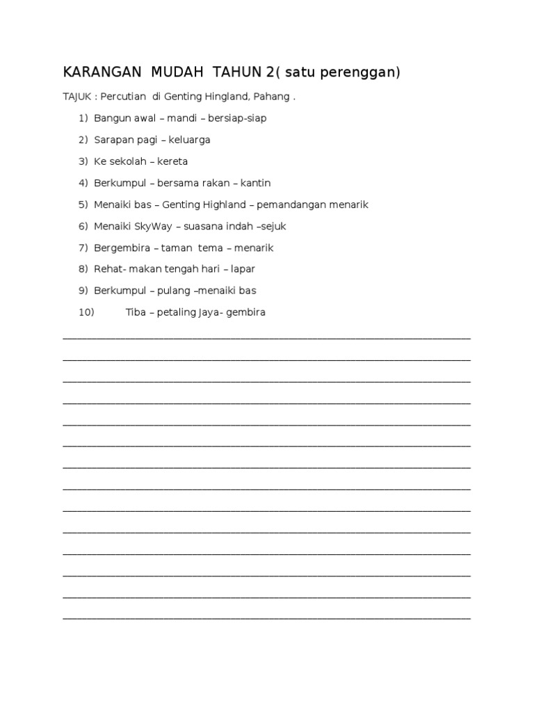 Rangka Dan Contoh Karangan Tahun 4 6