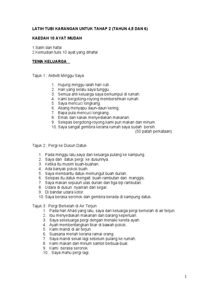 Bahasa Melayu Isi Isi Ringkas Karangan Upsr Doc 60 Contoh Karangan Menggunakan 10 Ayat Mudah Tema Keluarga 1 Tuliskan Sebuah Karangan Yang Bertajuk Course Hero