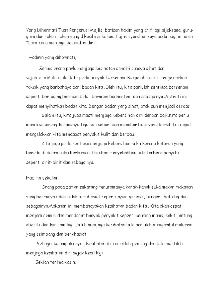 Karangan Cara Cara Menjaga Kesihatan Diri