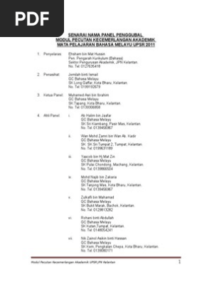 Kandungan 1 Modul Penulisan Bahasa Melayu Sk Ppmp Negeri Johor Kandungan Muka Surat 1 Prakata Pdf Document