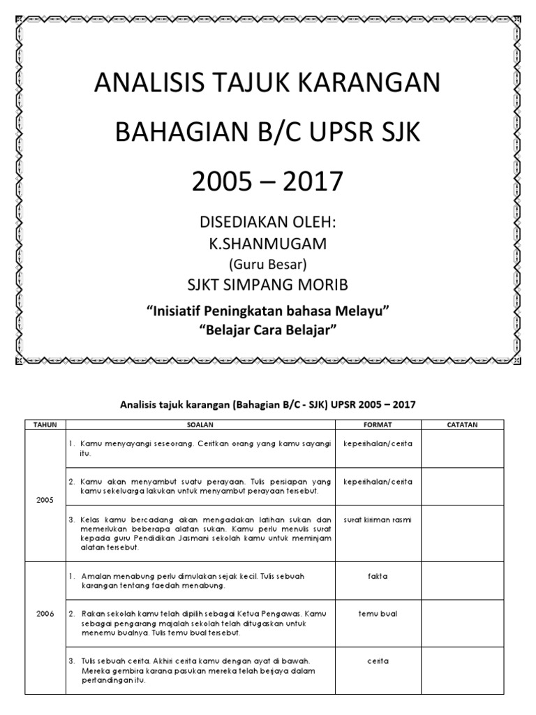 Analisis Karangan Upsr 2005 2016
