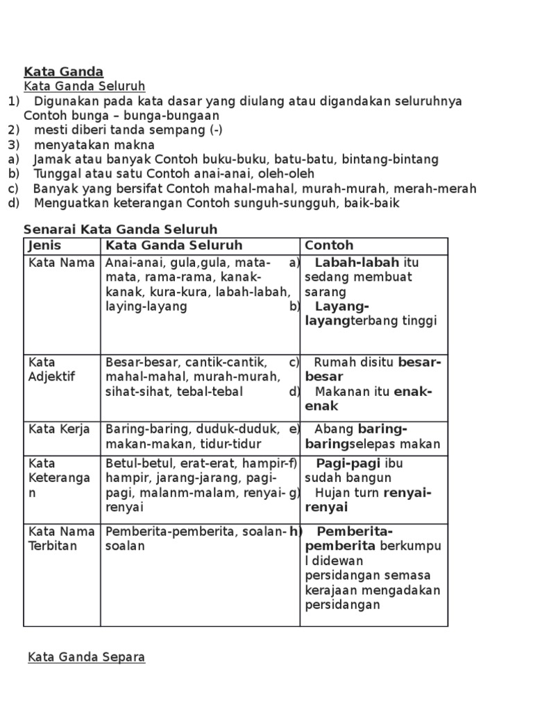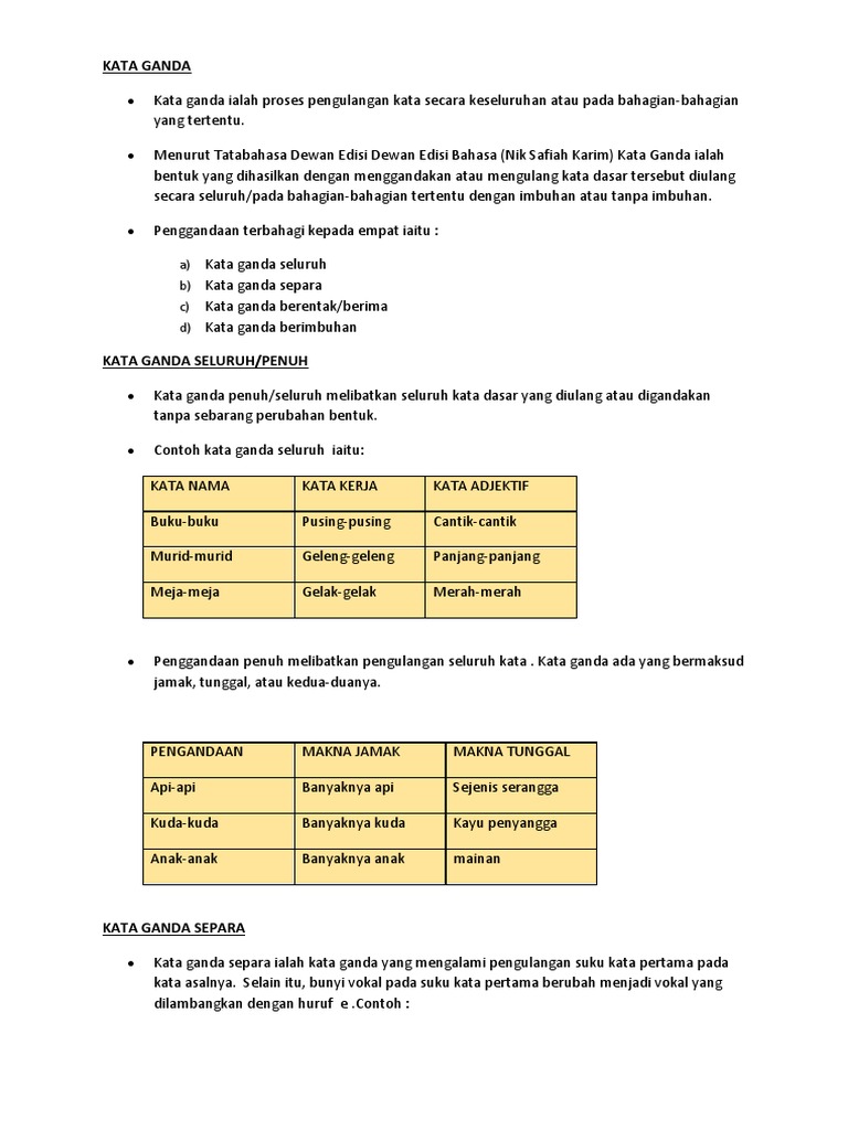 Nota Dan Latihan Kata Ganda Separa Cikgu Ayu Dot My