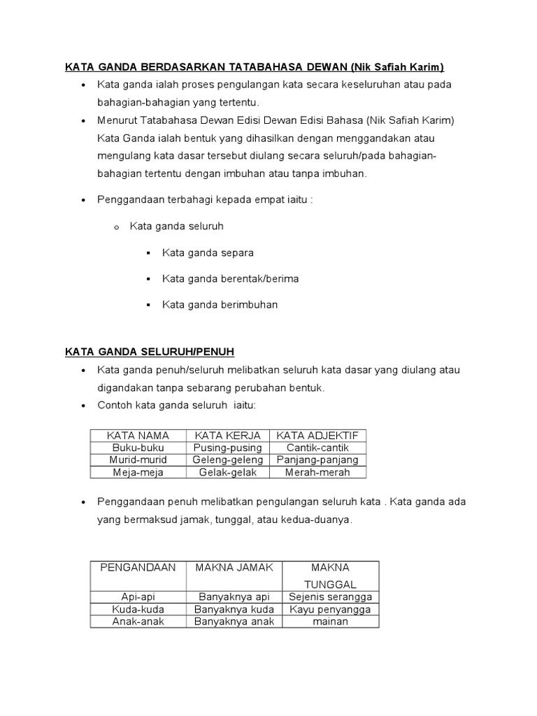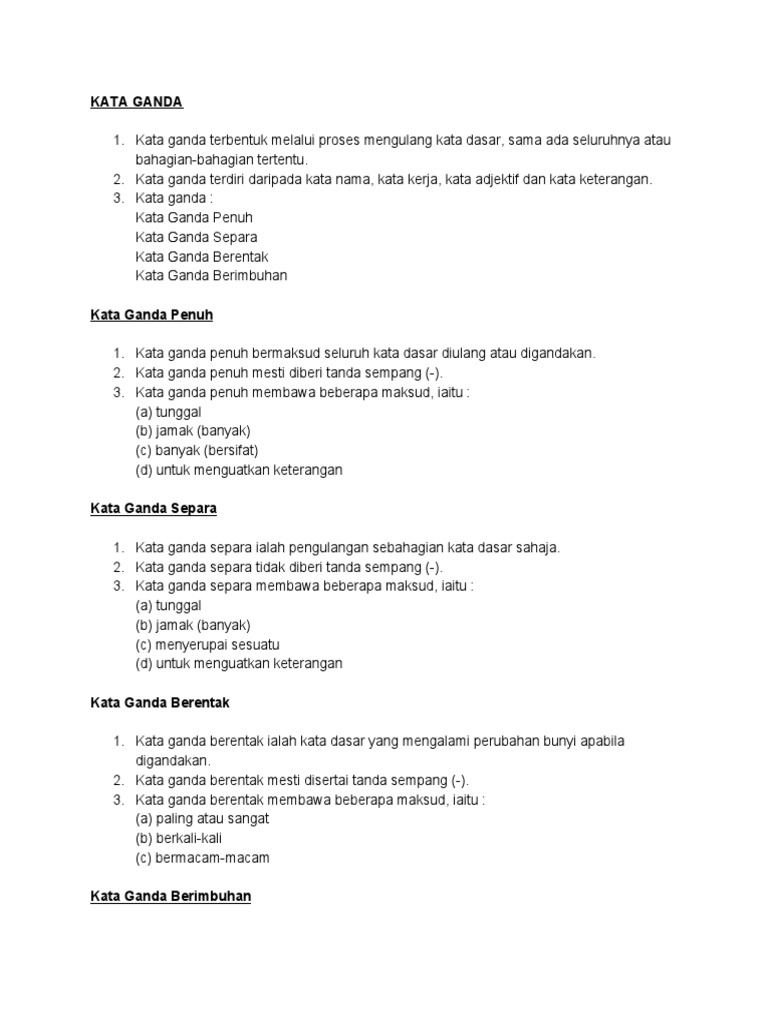 Nota Dan Latihan Kata Ganda Separa Cikgu Ayu Dot My