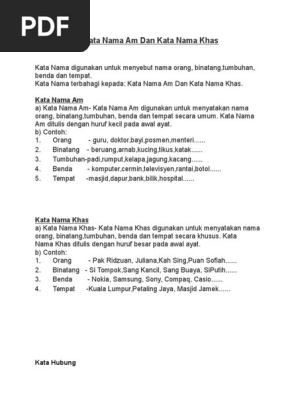 Tatabahasa Kata Nama Am Kata Nama Khas Kata Nama Ganti