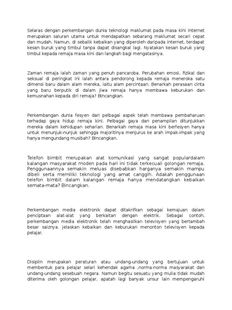 Karangan Kebaikan Dan Keburukan Telefon Docsity