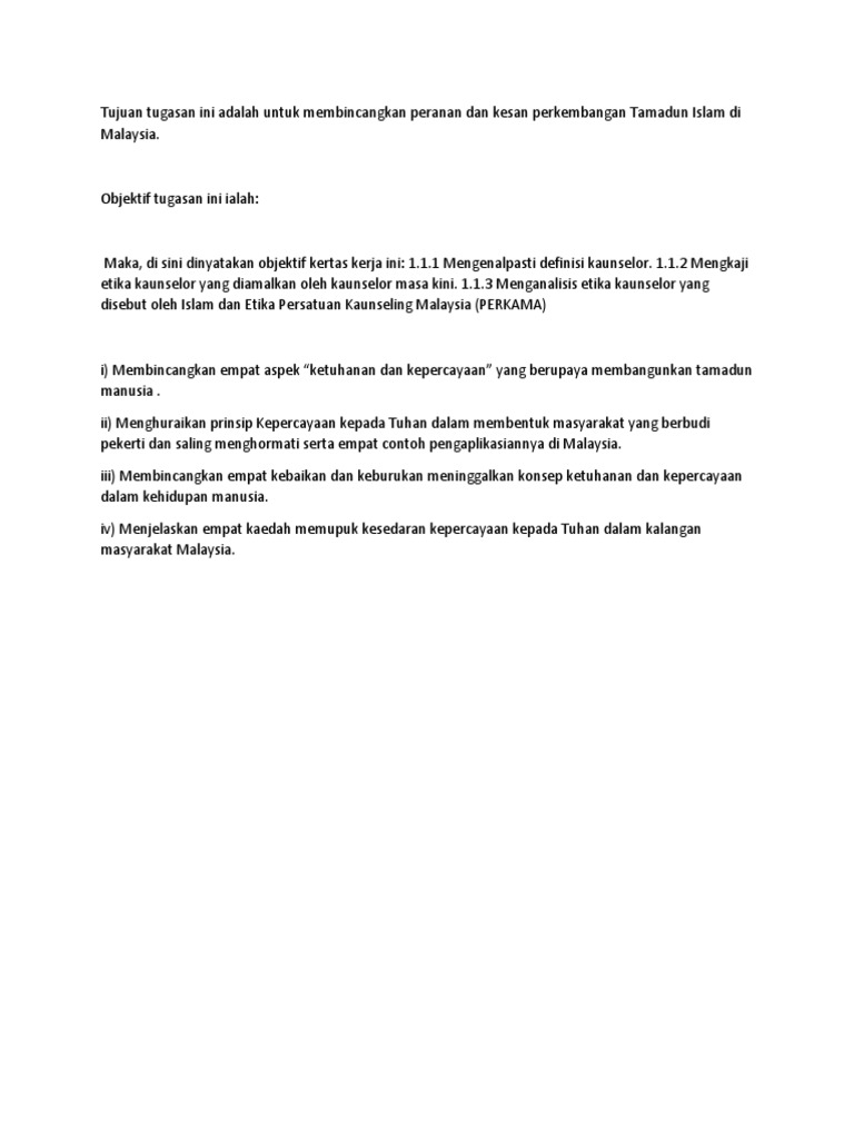 Tujuan Tugasan Ini Adalah Untuk Membincangkan Peranan Dan Kesan Perkembangan Tamadun Islam Di Malaysia