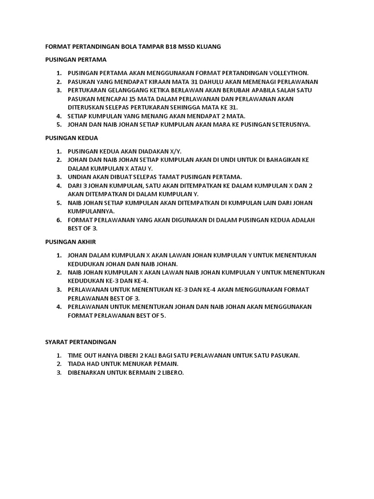 Format Pertandingan Bola Tampar B18 Mssd Kluang