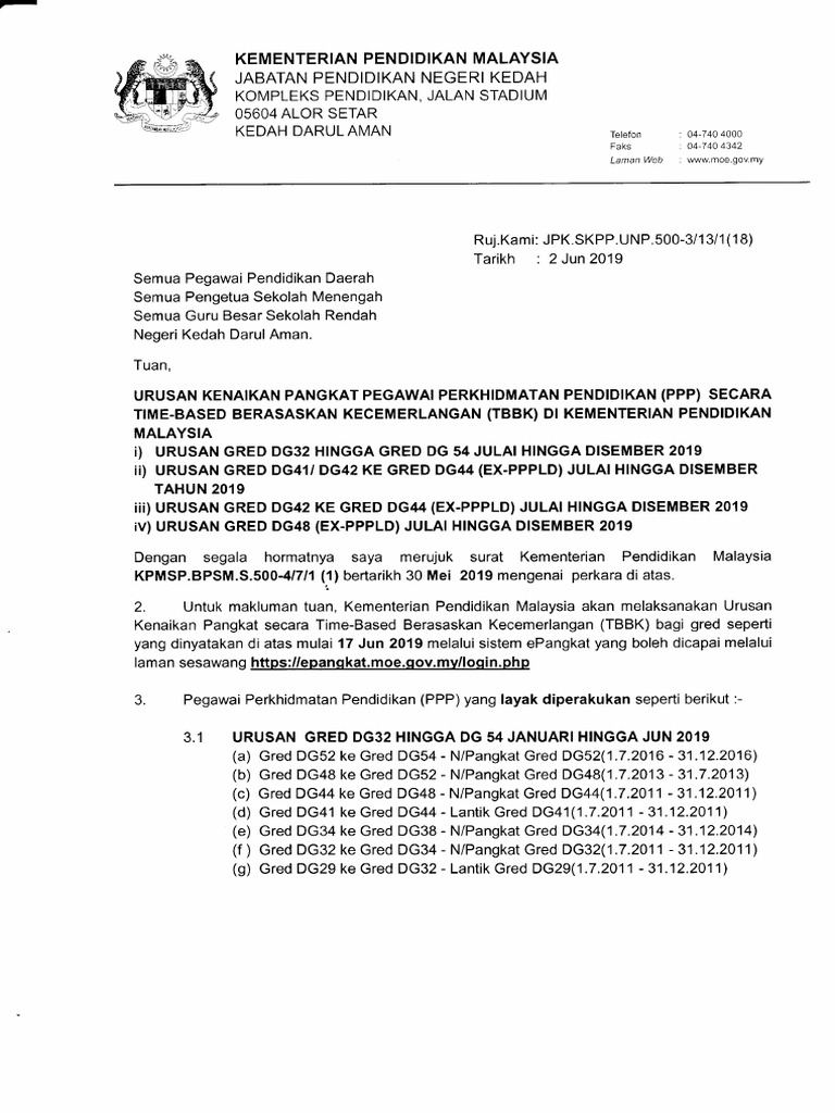 Urusan Kenaikan Pangkat Pegawai Perkhidmatan Pendidikan Ppp Gred Dg32 Gred Dg54 Bagi Julai Disember 2019 Pendidik2u