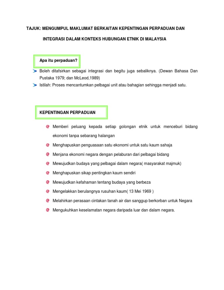 Tajuk Mengumpul Maklumat Berkaitan Kepentingan Perpaduan Dan Integrasi Dalam Konteks Hubungan Etnik Di Malaysia