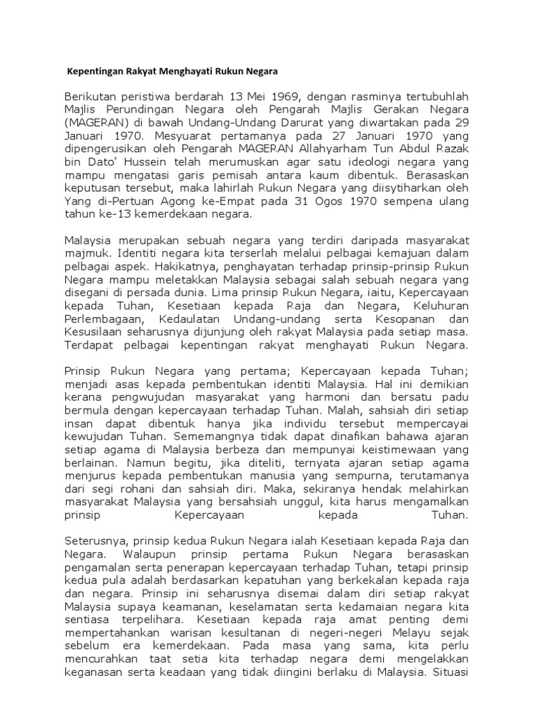 Kepentingan Menghayati Rukun Negara