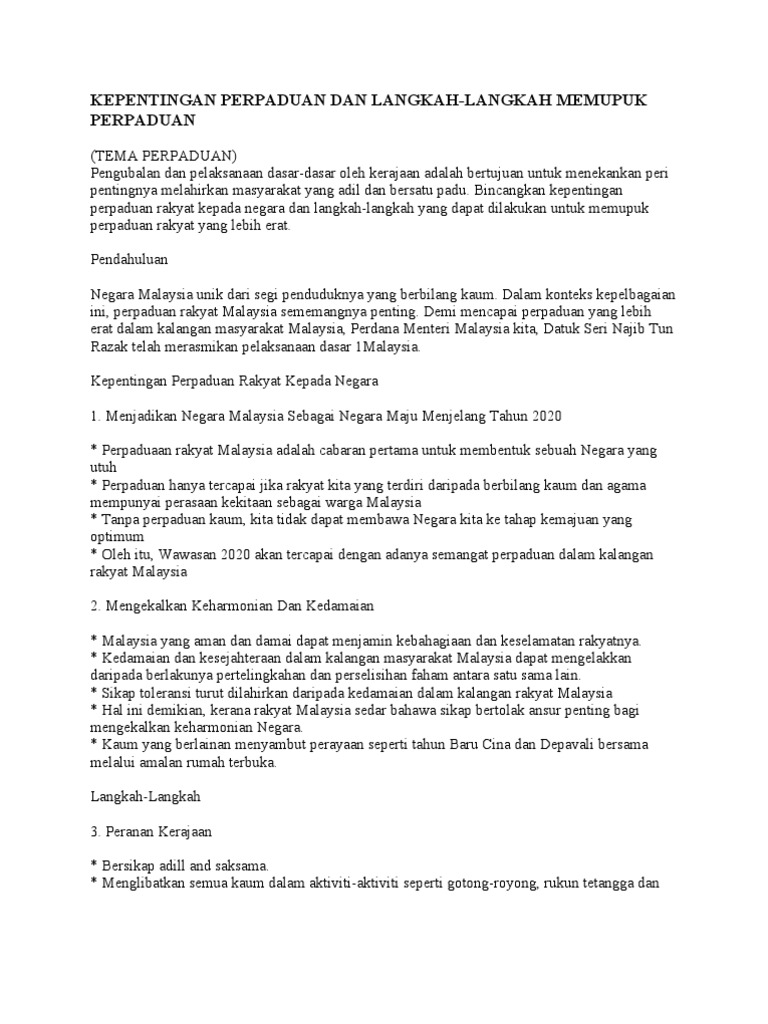 Contoh Karangan Kepentingan Perpaduan Kaum Di Malaysia