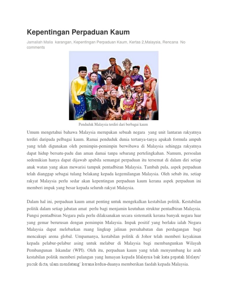 Contoh Karangan Kepentingan Perpaduan Kaum Di Malaysia