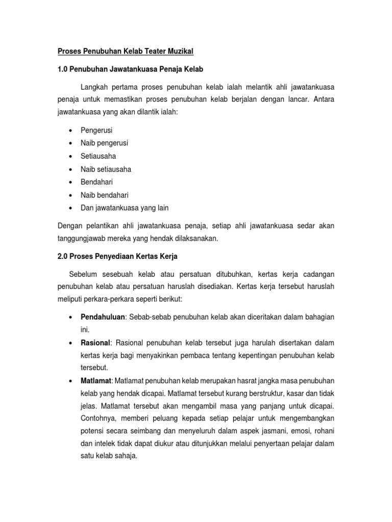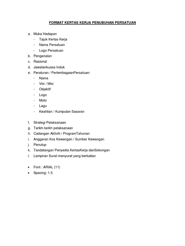 Contoh Kertas Kerja Cadangan Penubuhan Persatuan Bahasa Melayu