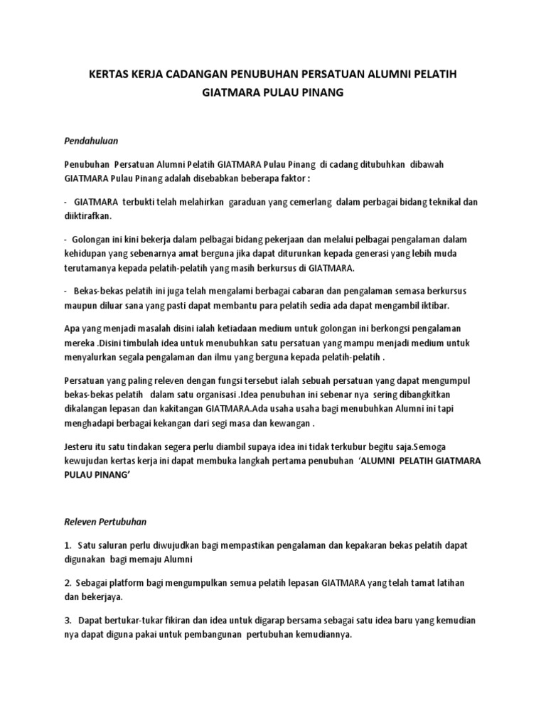 Kertas Kerja Cadangan Penubuhan Persatuan Alumni Pelatih Giatmara Pulau Pinang 1