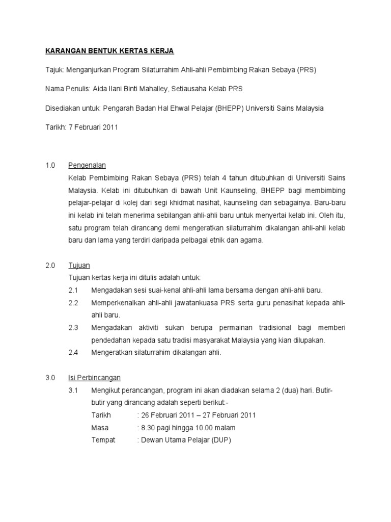 Contoh Kertas Kerja Program In 2020 Documents