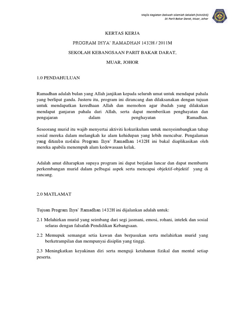 Doc Contoh Kertas Kerja Ihya Ramadhan Mar Nasir Academia Edu