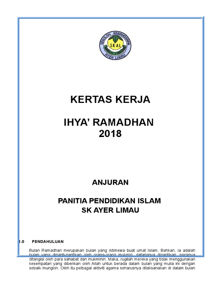 Doc Kertas Kerja Ihya Ramadan Noor Hidayah Academia Edu