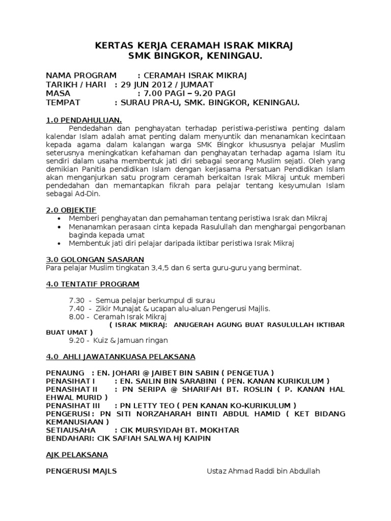 Doc Kertas Kerja Sambutan Israk Mazri Kalik Academia Edu