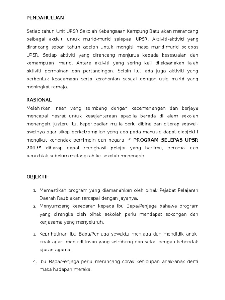 Kertas Kerja Program Selepas Upsr Skkb 2017 Doc