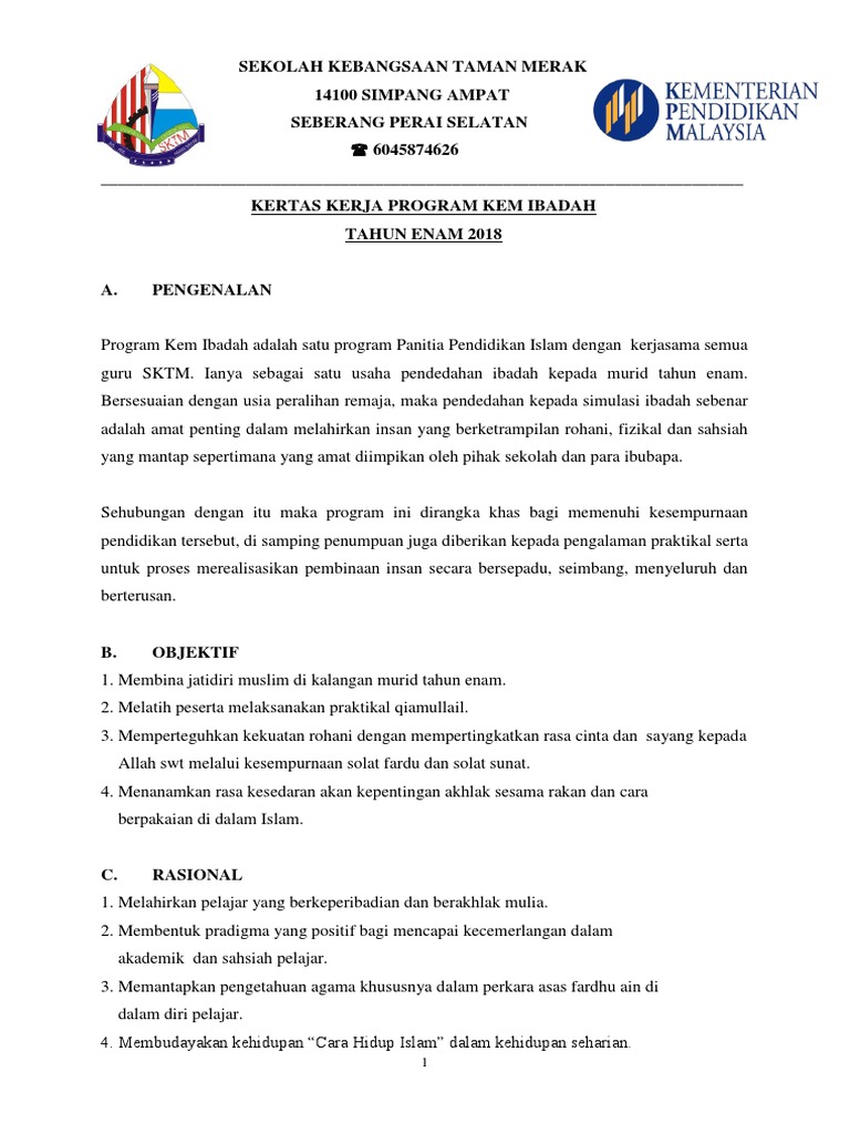 Kertas Kerja Kem Ibadah 2018 Docx