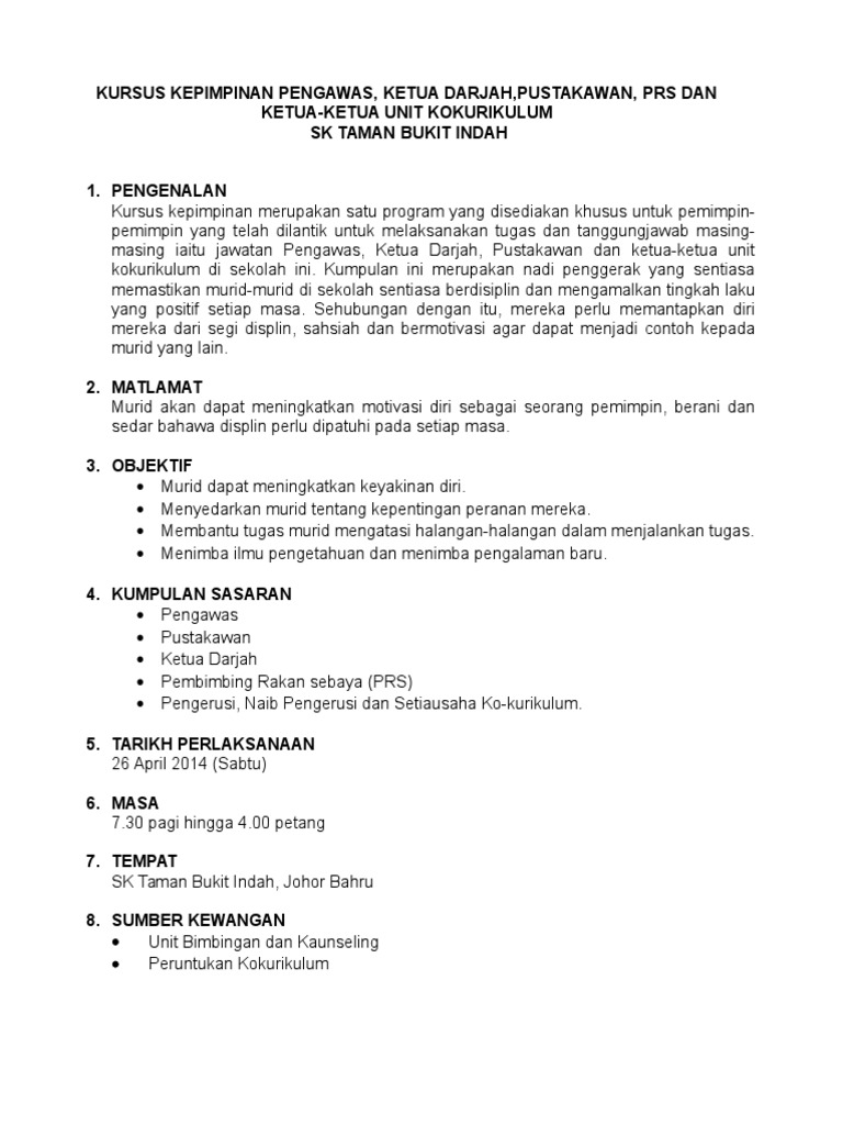 Bagi memudahkan guru juga berikut merupakan modul latihan dalam kumpulan ldk yang boleh dilaksanakan sewaktu menganjurkan kem ini di sekolah. Kertas kerja kem kepimpinan pengawas antara aktiviti awal yang boleh dilaksanakan di sekolah adalah kem kepimpinan bagi pengawas atau ketua dan penolong kelas. Kertas kerja kem kepimpinan 2014 there is document kertas kerja kem kepimpinan 2014 available here for reading and downloading. Diharapkan juga ianya dapat memberi kesan untuk memupuk semangat kerjasama antara guru dan ahli ahli unit beruniform.
