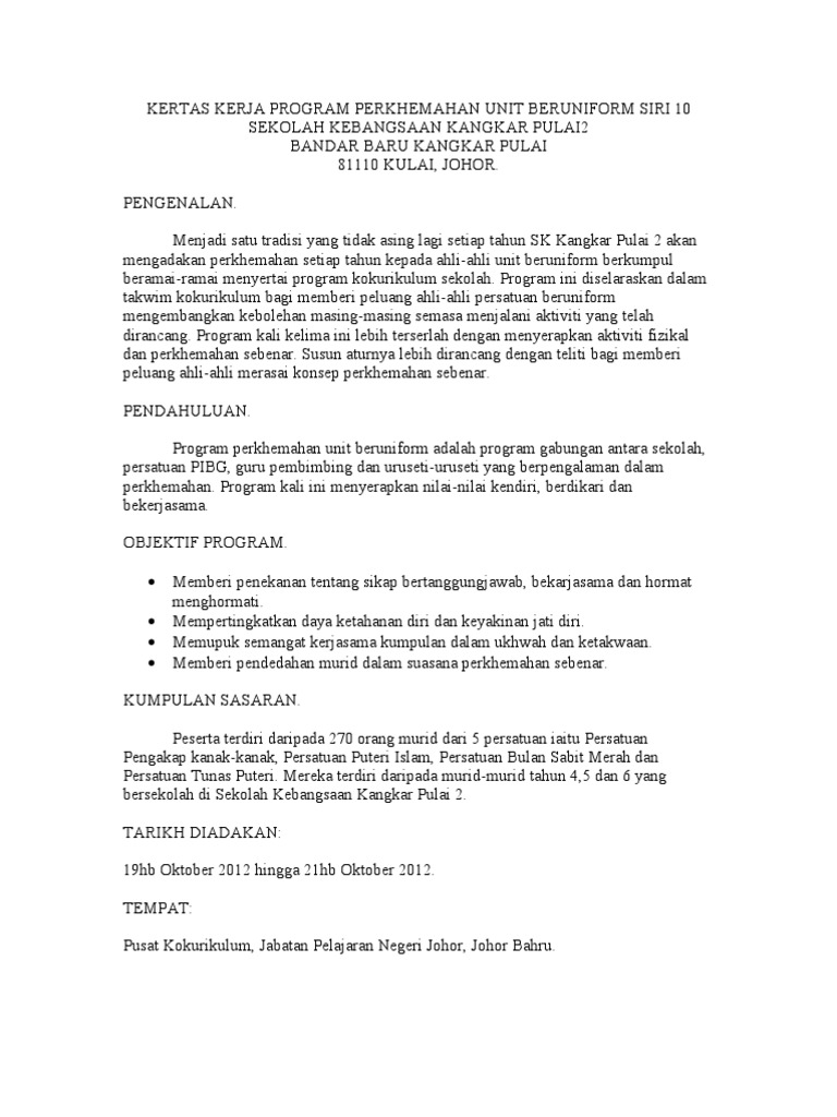 Kertas Kerja Perkhemahan 1 Nov Pages 1 10 Text Version Anyflip