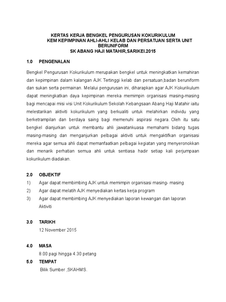 Contoh Kertas Kerja Kem Kepimpinan Contoh Jos