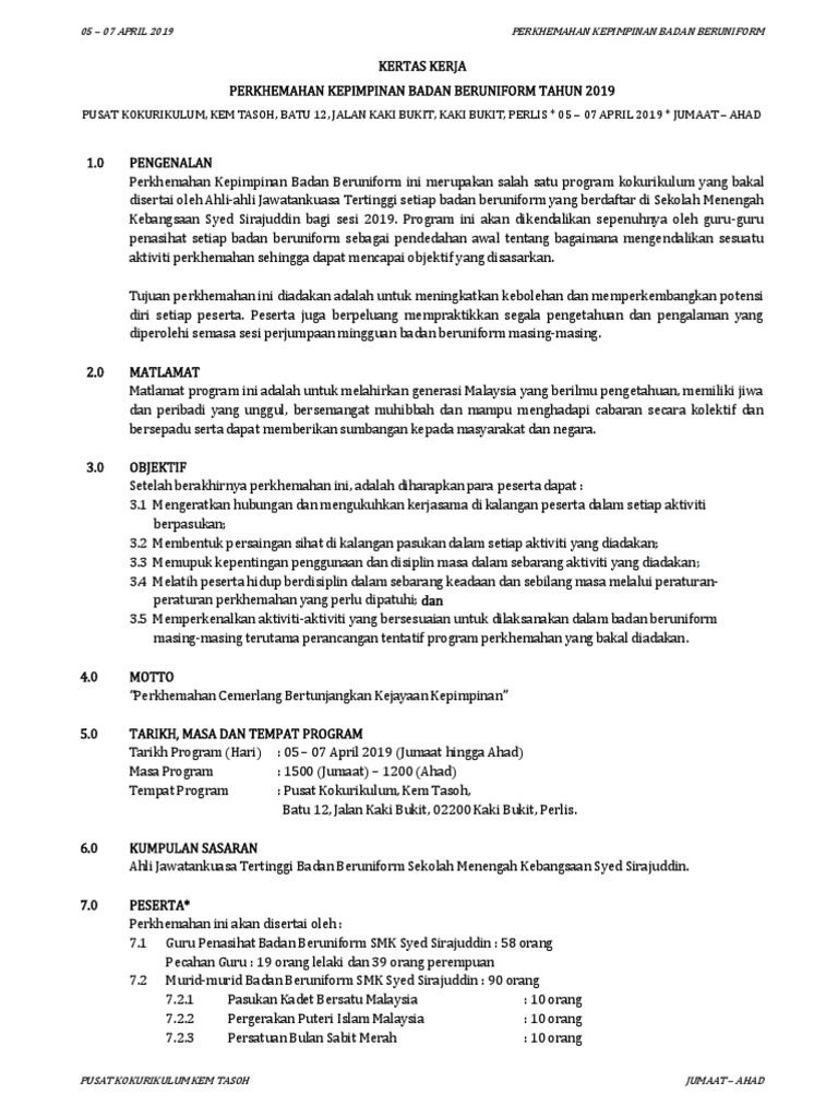 Kertas Kerja Perkhemahan Ub Smesh Pages 1 19 Text Version Anyflip