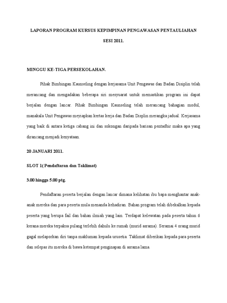 Laporan Program Kursus Kepimpinan Pengawasan Pentauliahan Sesi 2011