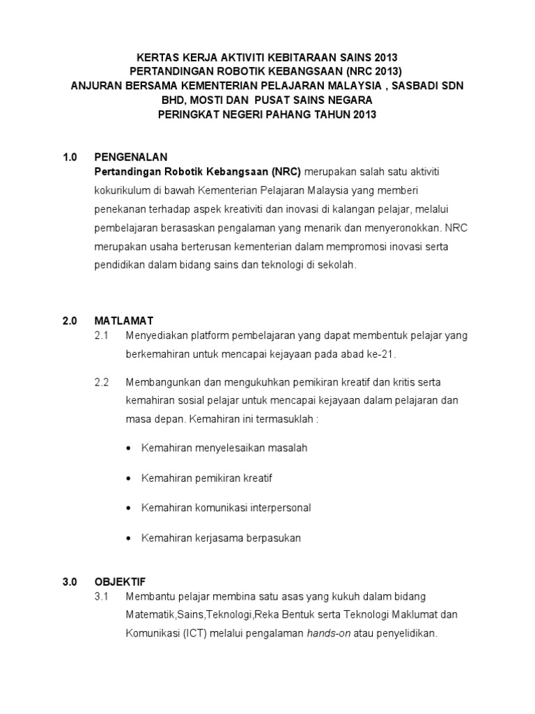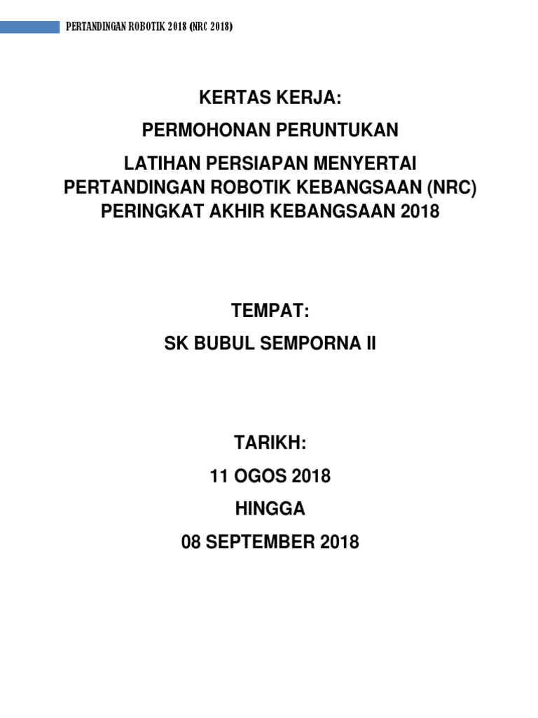 Kelab Robotik Sjk T Simpang Lima Kertas Kerja Lawatan Ke Pertandingan Robotik Kebangsaan Nrc2018