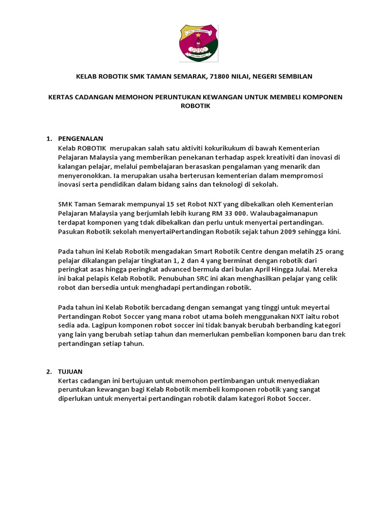 Kertas Kerja Cadangan Penubuhan Kelab Robotik 1