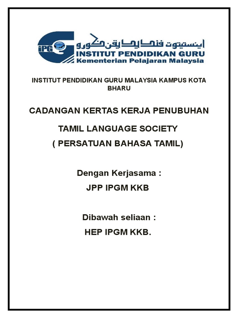 Contoh Kertas Kerja Cadangan Penubuhan Persatuan Bahasa Melayu