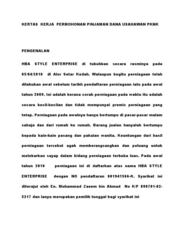 Contoh Kertas Kerja Perniagaan Terkini Mohdrawi Com