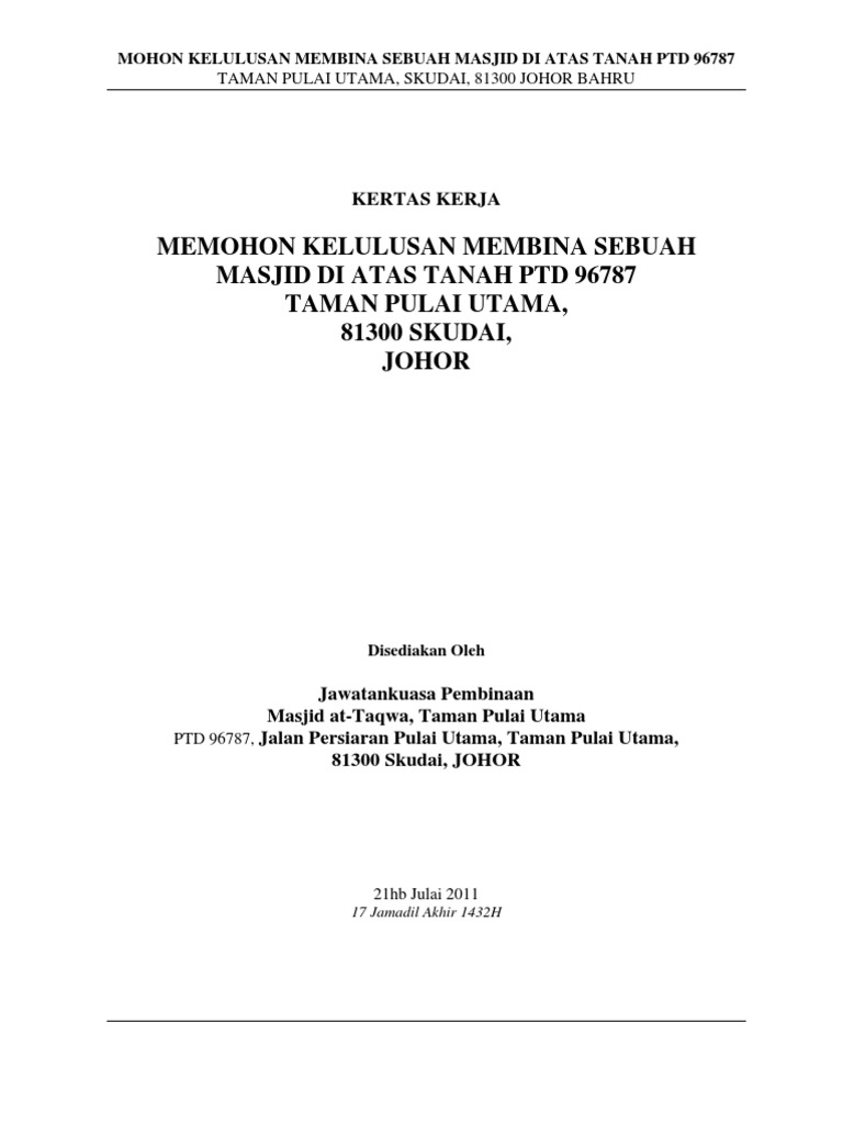 Kertas Kerja Mohon Kebenaran Bina Masjid