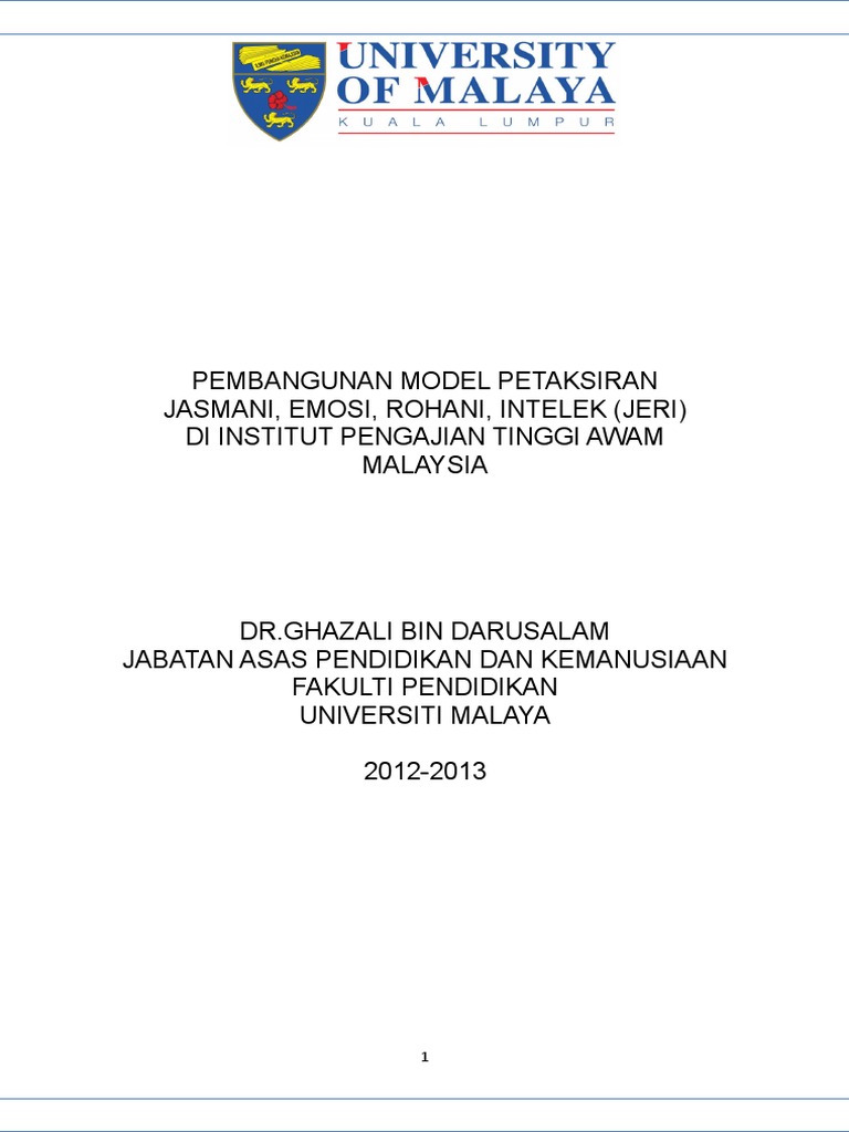 Pembangunan Model Petaksiran Jasmani Emosi Rohani Intelektual Doc