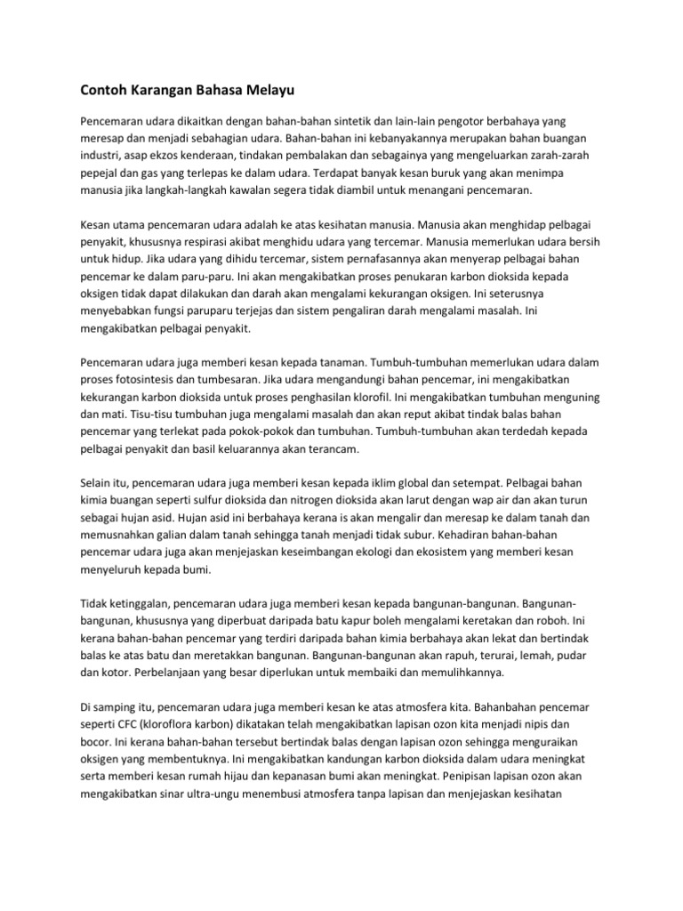 Contoh Karangan Bahasa Melayu