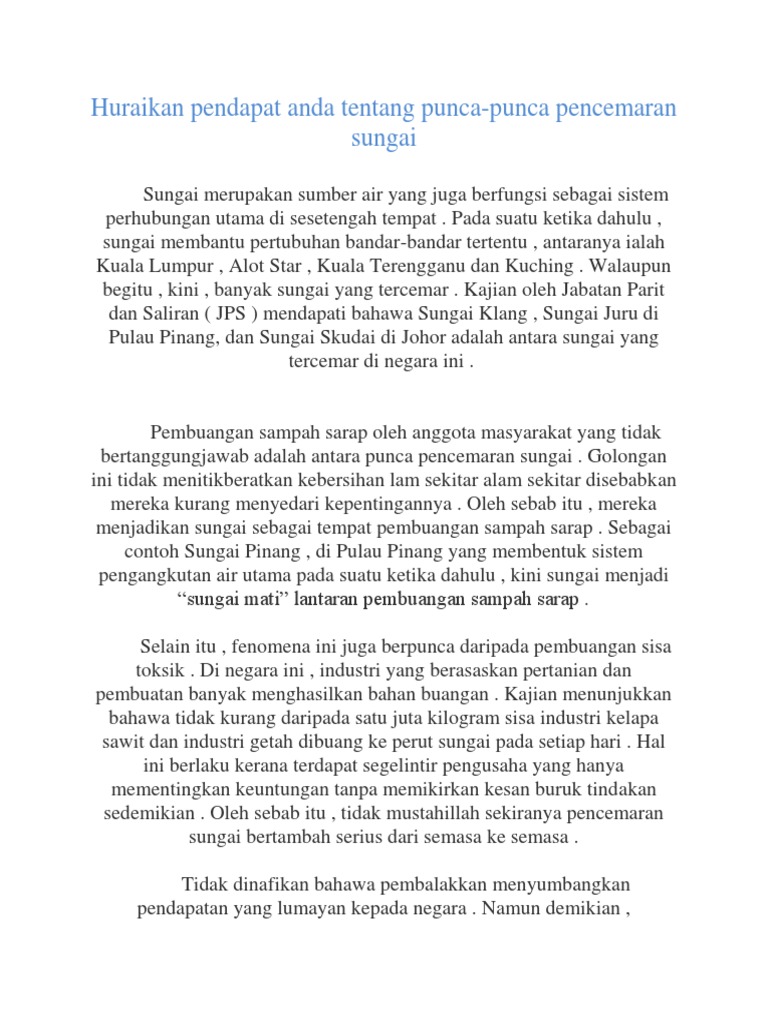 Huraikan Pendapat Anda Tentang Punca