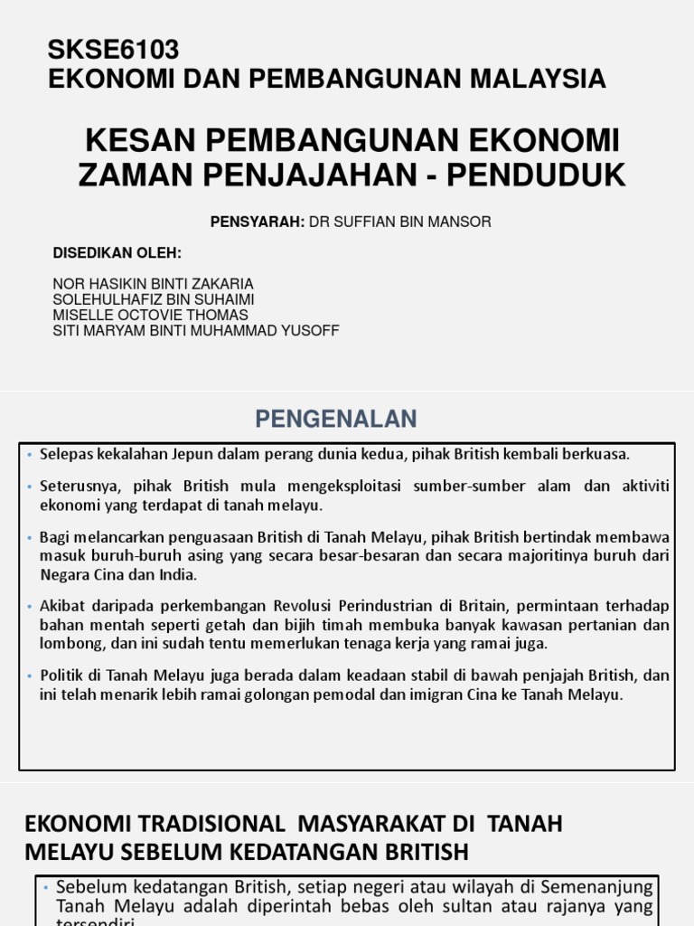 Kesan Penjajahan British Dari Segi Ekonomi Di Tanah Melayu K By Nurul Syaza